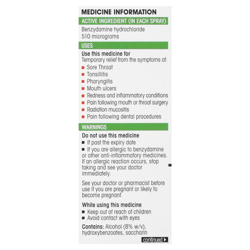 - If you are allergic to benzydamine or other anti-inflammatory medicines. If an allergic reaction occurs, stop taking and see your doctor immediately.
