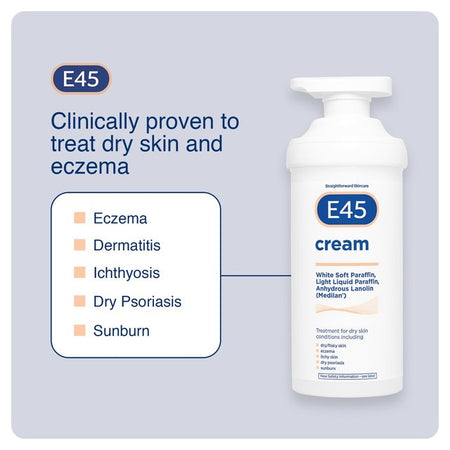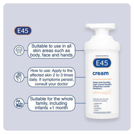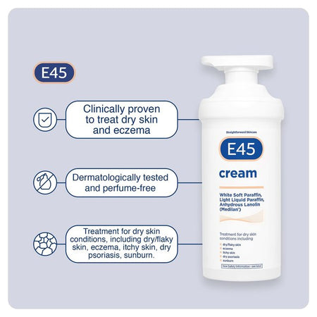 E45 Derma Skin Cream a formula designed by experts for dry skin conditions. A rich soothing cream; unperfumed and non-greasy. Brings relief to a wide range of dry skin conditions including flaking skin.
