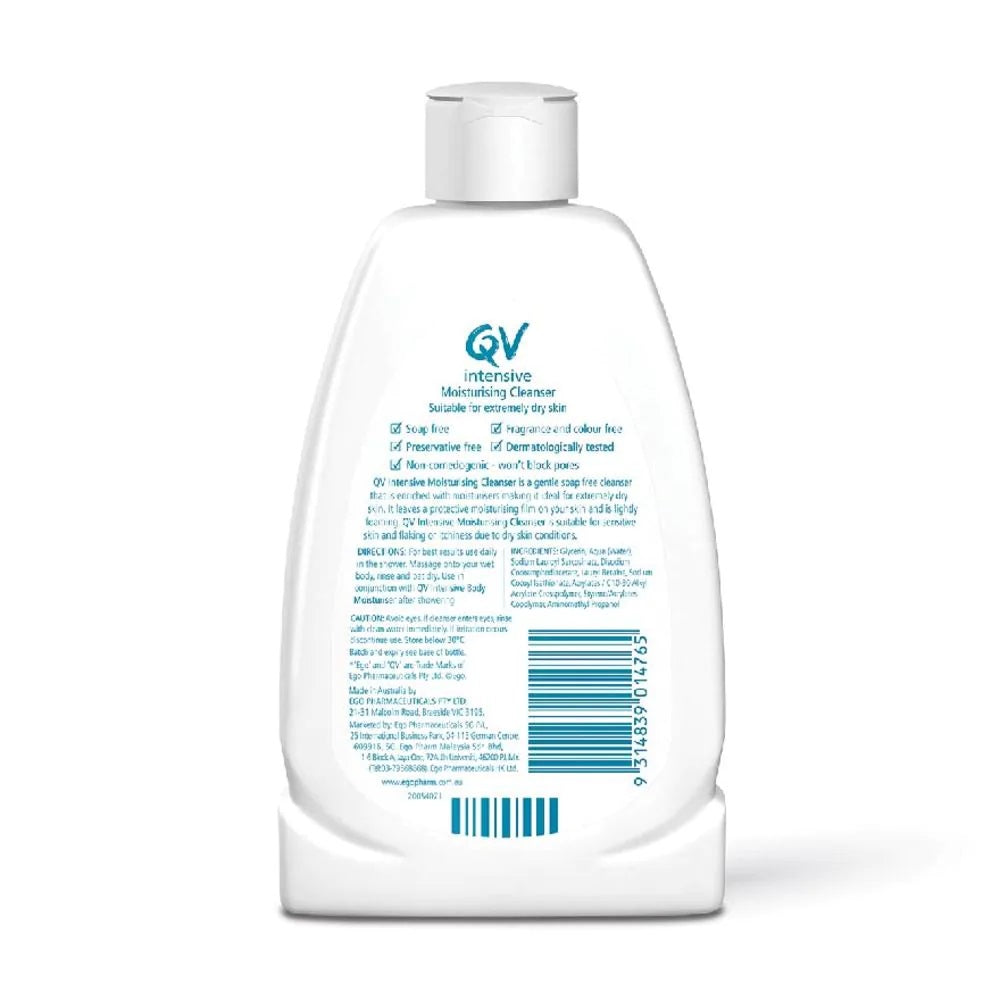 Ego QV Intensive Moisturizing Cleanser is a gentle and soap-free cleanser that’s ideal for extremely dry and sensitive skin. The lightly-foaming formulation gently cleanses and softens, leaving a hydrating film on your skin. This cleanser contains a higher moisturizer concentration than QV Gentle Wash.