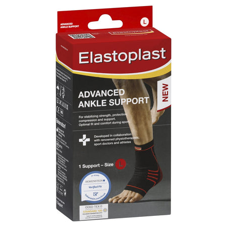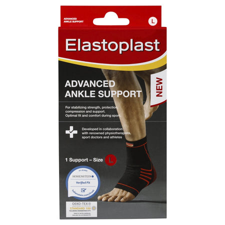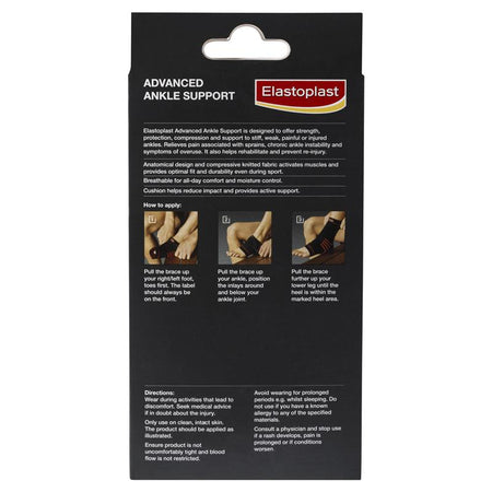 Elastoplast Advanced Ankle Support is designed to offer strength, protection, compression and support to stiff, weak, painful or injured ankles. Relieves pain associated with sprains, chronic ankle instability and symptoms of overuse. It also helps rehabilitate and prevent re-injury.