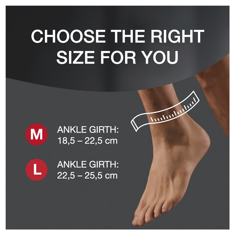 Elastoplast Advanced Ankle Support is designed to offer compression and support to relieve pain associated with ankle sprains, chronic ankle instability and symptoms of overuse. It also helps to prevent re-injury. The anatomical design allows for an individual fit with comfortable support during movement, with inlays helping to reduce impact and offer extra comfort. The Advanced Ankle Support has a verified fit guaranteed by the Hohenstein Research Institute and product quality certification from Standard 100 By Oeko-Tex. This product is Latex free.