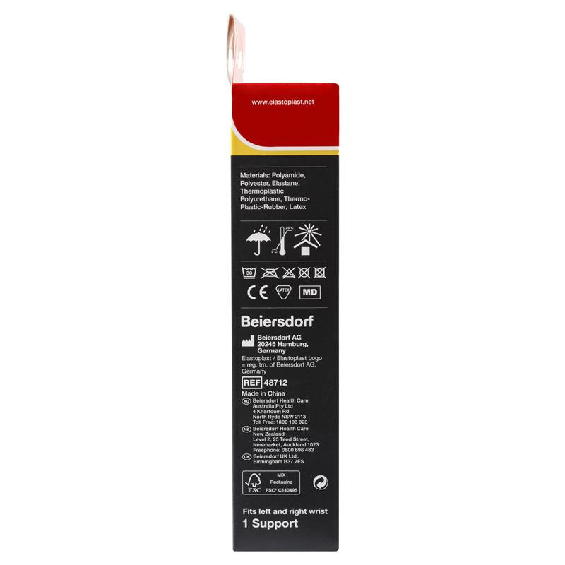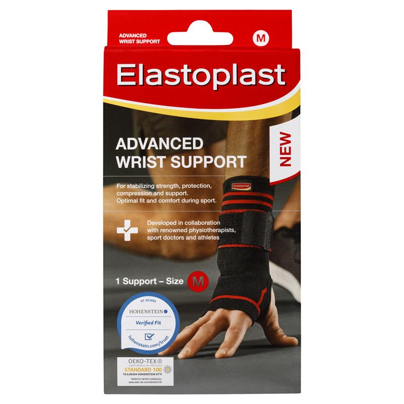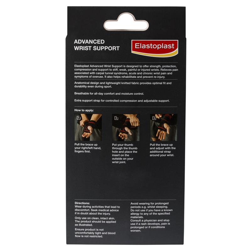 Elastoplast Advanced Wrist Support is designed to offer compression and support to relieve pain associated with carpal tunnel syndrome, acute and chronic wrist pain, and symptoms of overuse. It also helps to prevent re-injury. The breathable and functional materials allow for all-day comfort, with a verified fit guaranteed by the Hohenstein Research Institute. The Advanced Wrist Support has an extra support strap for controlled compression and adjustable support. This product has product quality certification from Standard 100 by Oeko-Tex.