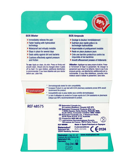The Elastoplast SOS Blisterplaster immediately relieves the pain and seals the affected area safely against dirt and bacteria. The hydrocolloid technology helps blister to heal faster. Its extra strong adhesion keeps the plaster in place for days. Ideal usage on toes.
