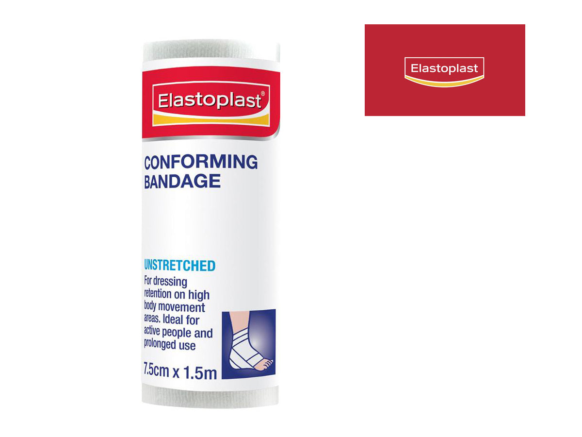 Durable and lightweight with a high level of stretch, conforming bandages are ideal for various wound care applications including sprain support and dressing retention. Elastoplast Conforming Bandages are unstretched, 1.5m long and come in three different widths. This makes them suitable for injuries on almost any part of the body.