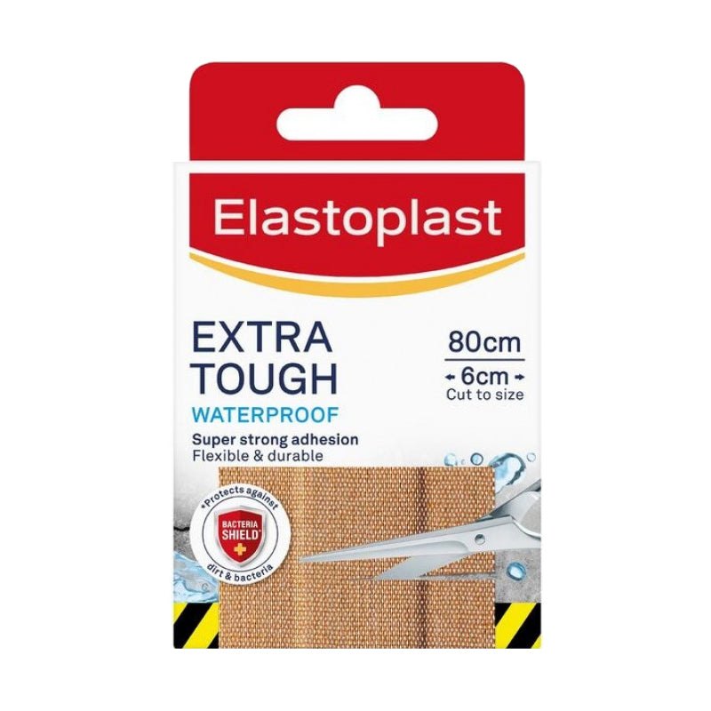 Elastoplast Extra Tough Waterproof super strong adhesion. Provides flexible & durable. Protects against dirt & bacteria. Cleanse, protect, heal for optimal wound healing. Extra tough and waterproof wound plasters to cover and protect minor wounds.