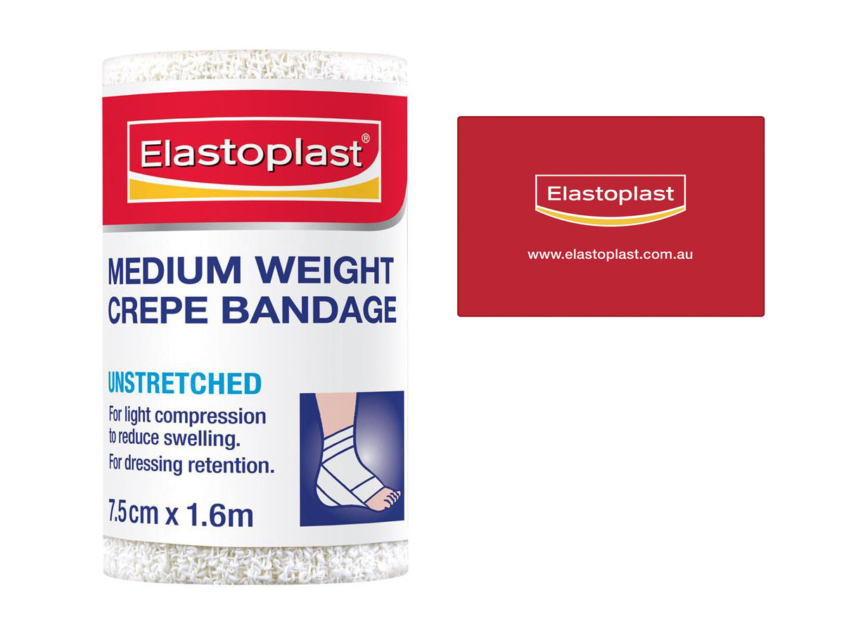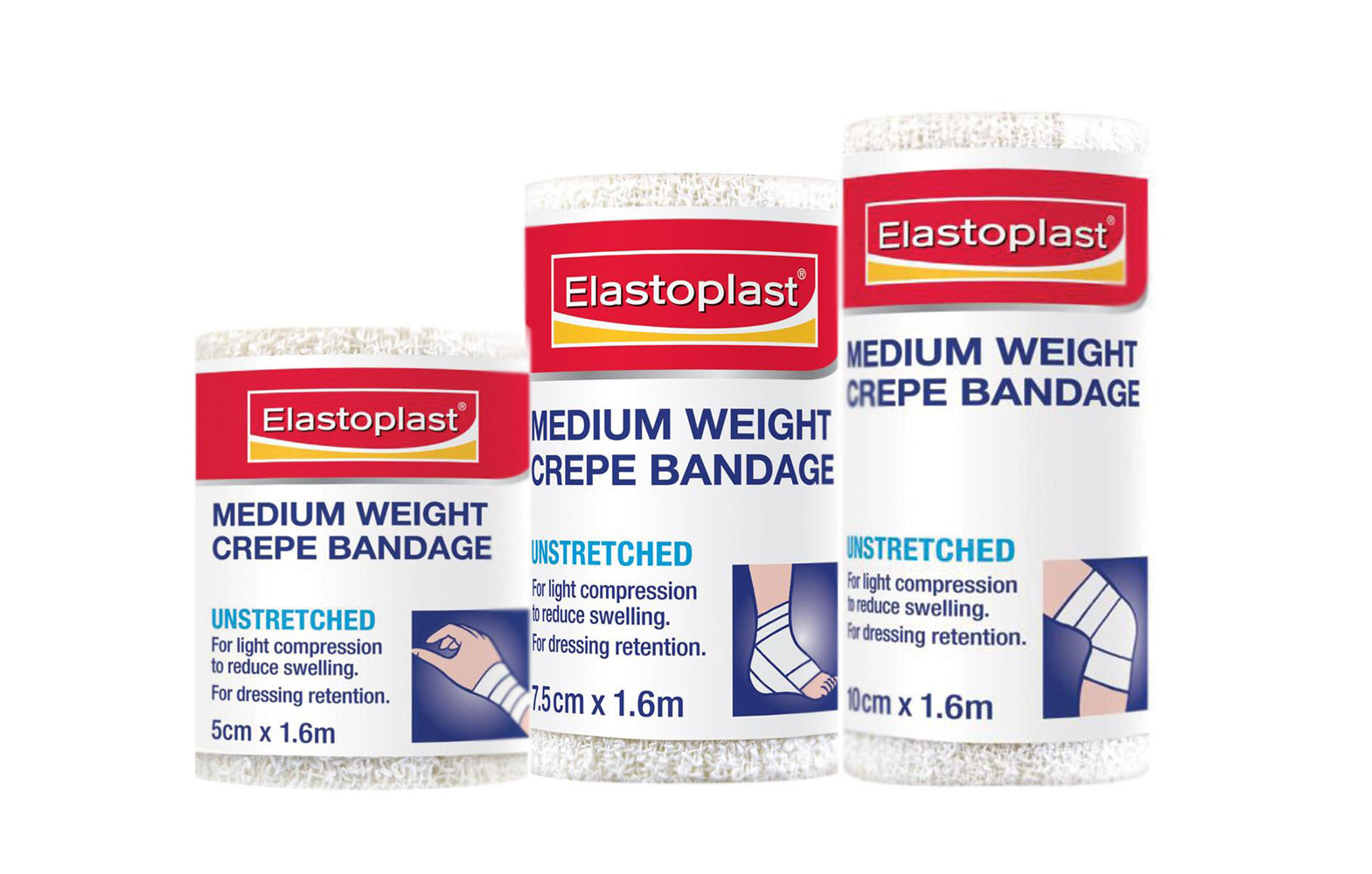 Medium weight Elastoplast Crepe Bandages are used as a dressing retention, keeping gauze, wound pads or sterile compresses in place over an open wound. They also naturally provide light compression, alleviating swelling.