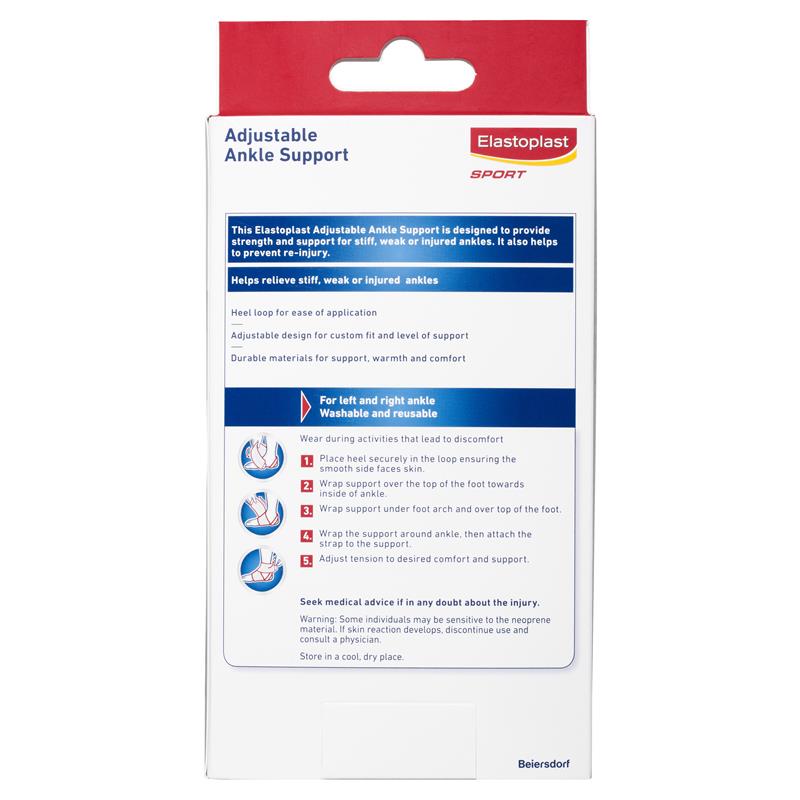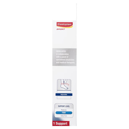 Elastoplast Sport Adjustable Ankle Support is designed to provide strength and stabilisation for weak or injured ankles. Through compression and all-round support, this adjustable ankle brace limits unwanted movement and supports weak tendons, preventing injury or re-injury. Also reduces swelling, pain and recovery time following minor sprains and strains.