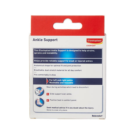 Elastoplast Sport Ankle Support provides support and moderate neuromuscular compression for weak or recovering ankles. Instep panels reduce bunching while the dual action material provides optimum comfort and breathable support.