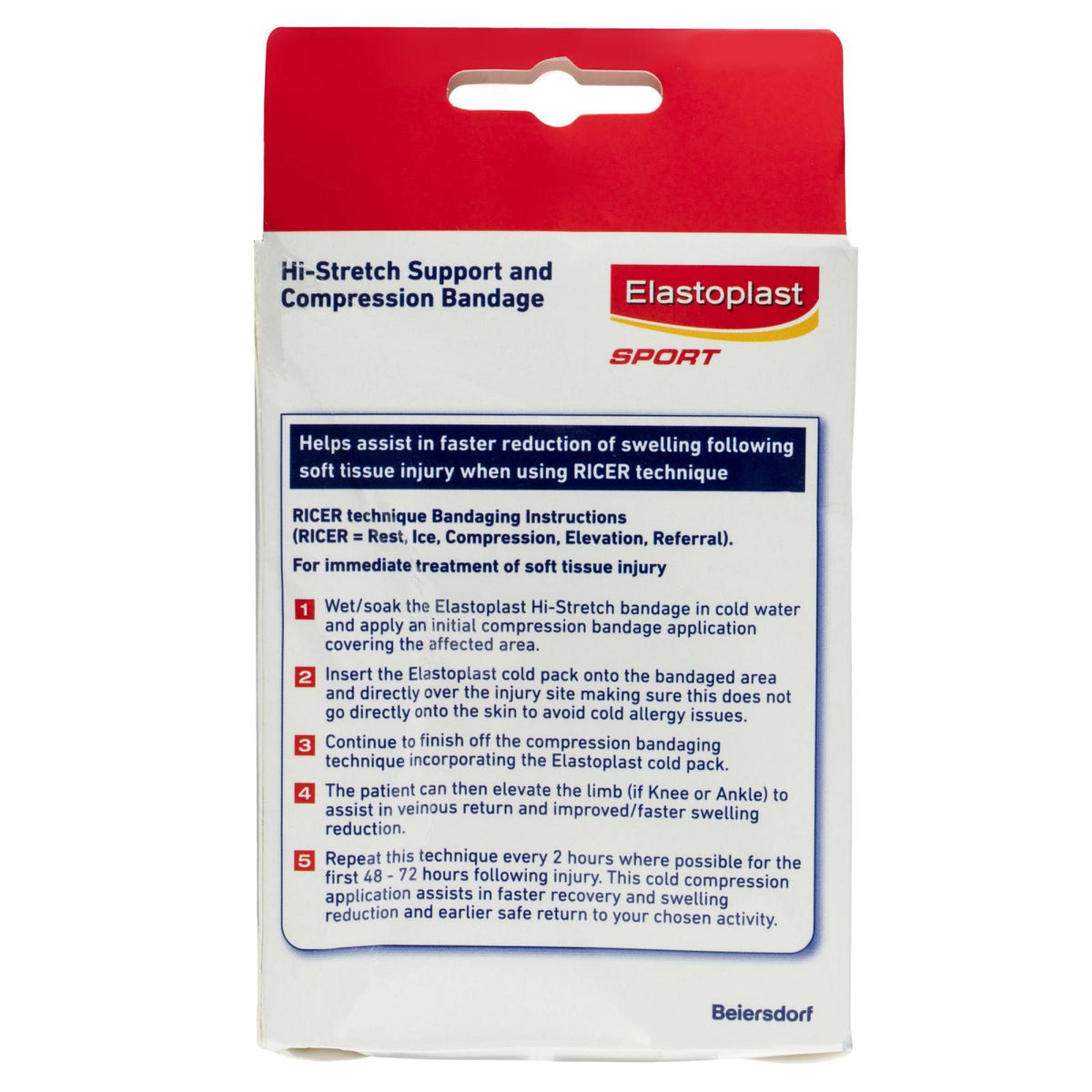 Elastoplast Sport Hi-Stretch Support and Compression Bandage is a highly elastic compression bandage, which offers good compression for soft tissue injury treatment. It can be used within the acute phases of soft tissue injuries, such as bruising, corked thighs or sprained ankles. The Hi-Stretch bandage is particularly useful in conjunction with the RICER technique.