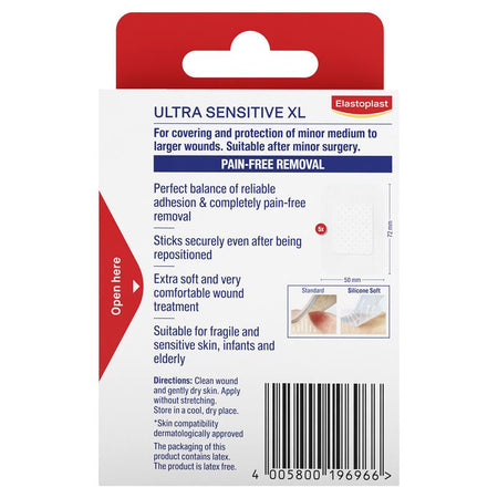 Ultra Sensitive is available in normal and XL formats for the protection and covering of minor medium to larger wounds. It is suitable after minor surgery.