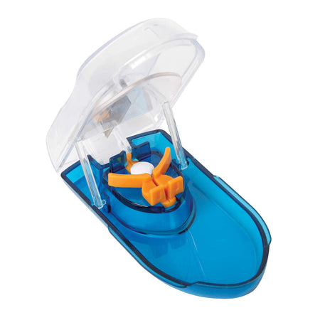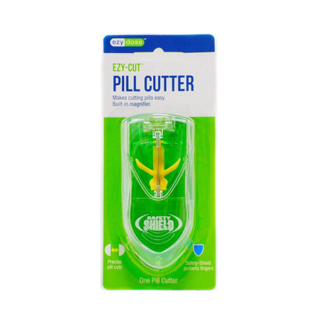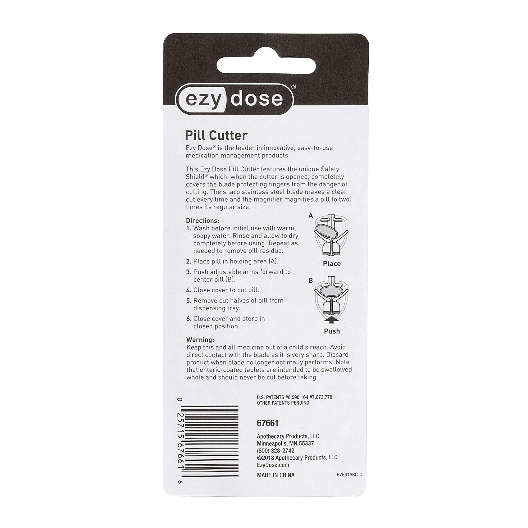 Ezy Dose Pill Cutter and Splitter with Safe Shield is simple to use and easily cuts through tablets and tills. Safety Shield - the unique safety shield covers the blade while pill cutter cover is open to prevent accidental cuts. The stainless steel blade effortlessly cuts through pills and tablets.