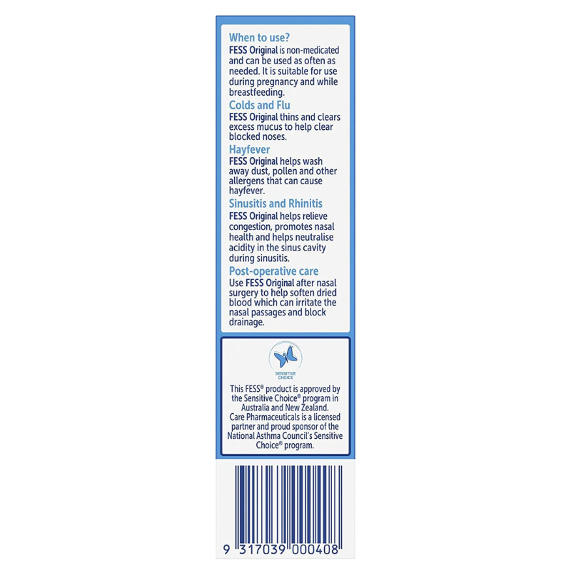 Your nose acts as the first line of defence for your body by filtering particles from the air. Regular use of non-medicated FESS® will also help keep your nose clear of excess mucus, allowing it to function at its best.