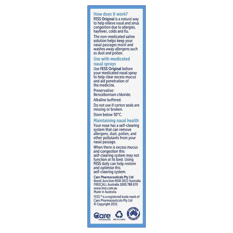 FESS Original Nasal Saline Spray, A natural way to help relieve nasal congestion.