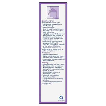 - Spray 2 to 3 times per day or as directed by your doctor or ENT specialist.