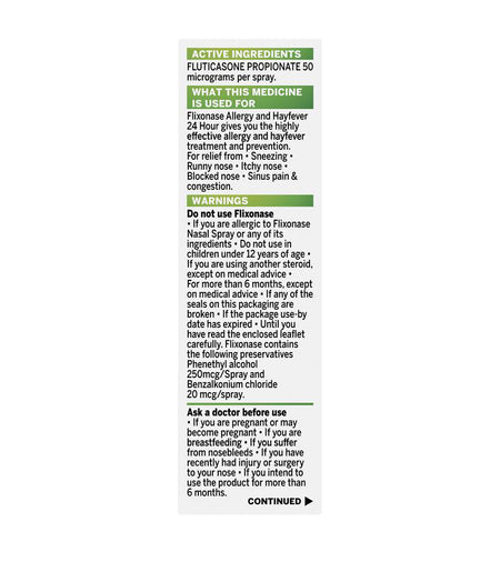 Flixonase Allergy & Hayfever Nasal Spray provides 24 hour relief of allergy and hayfever symptoms with a non-drowsy formula. Treats moderate to severe symptoms of allergic rhinitis.
