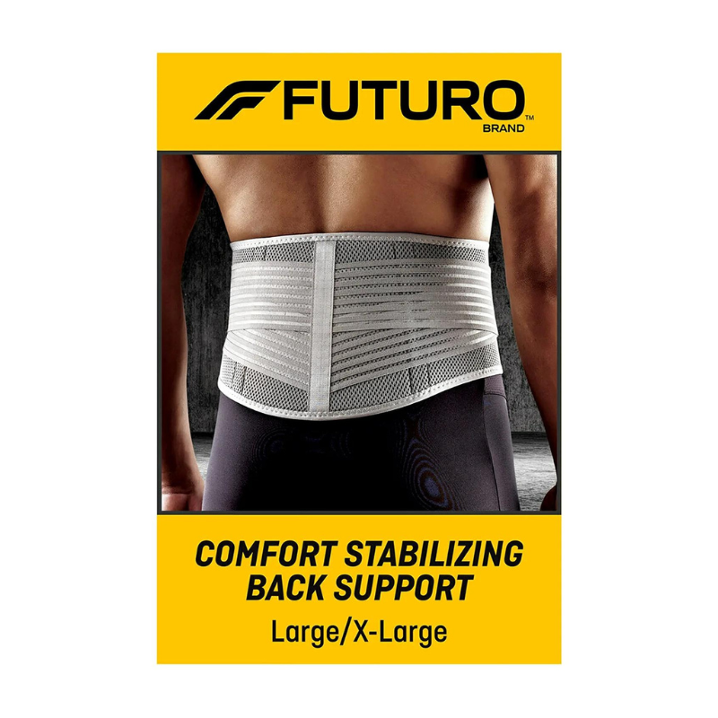Futuro Stabilizing Back Comfort Stabilizing Support, The FUTURO™ Comfort Stabilizing Back Support provides the extra support you need during your run, workout and daily activities. Customizable straps let you adjust the fit to your specifications, and breathable construction releases excess heat and moisture for all-day comfort. Stay on schedule, keep your appointments and get out and about by relying on the sturdy support of the FUTURO™ Comfort Stabilizing Back Support.
