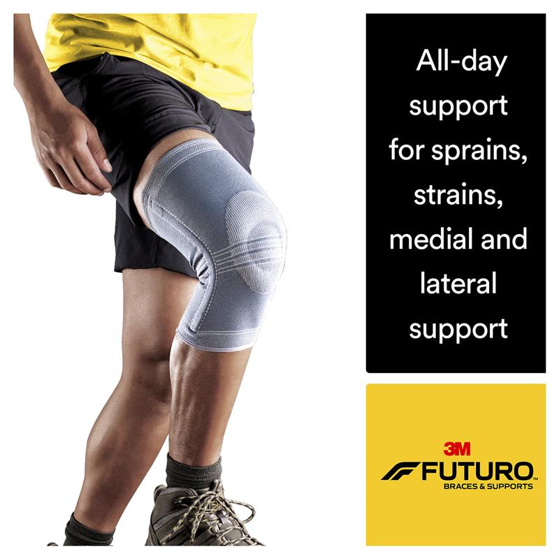 Futuro Ultra Performance Knee Stabiliser is designed to support your injured knee with moderate stabilizing support. Crafted from four way stretch knit fabric, and featuring a gel ring that surrounds your kneecap, this comfortable knee brace helps provide targeted compression around your injury. Side stabilizers deliver extra support and silicone beading delivers a stay put fit–even during intense exercise. Breathable properties let sweat escape, and the sleek design is comfortable for all day wear. So reach for the Futuro Active Knit Knee Stabilizer and stay in the game.