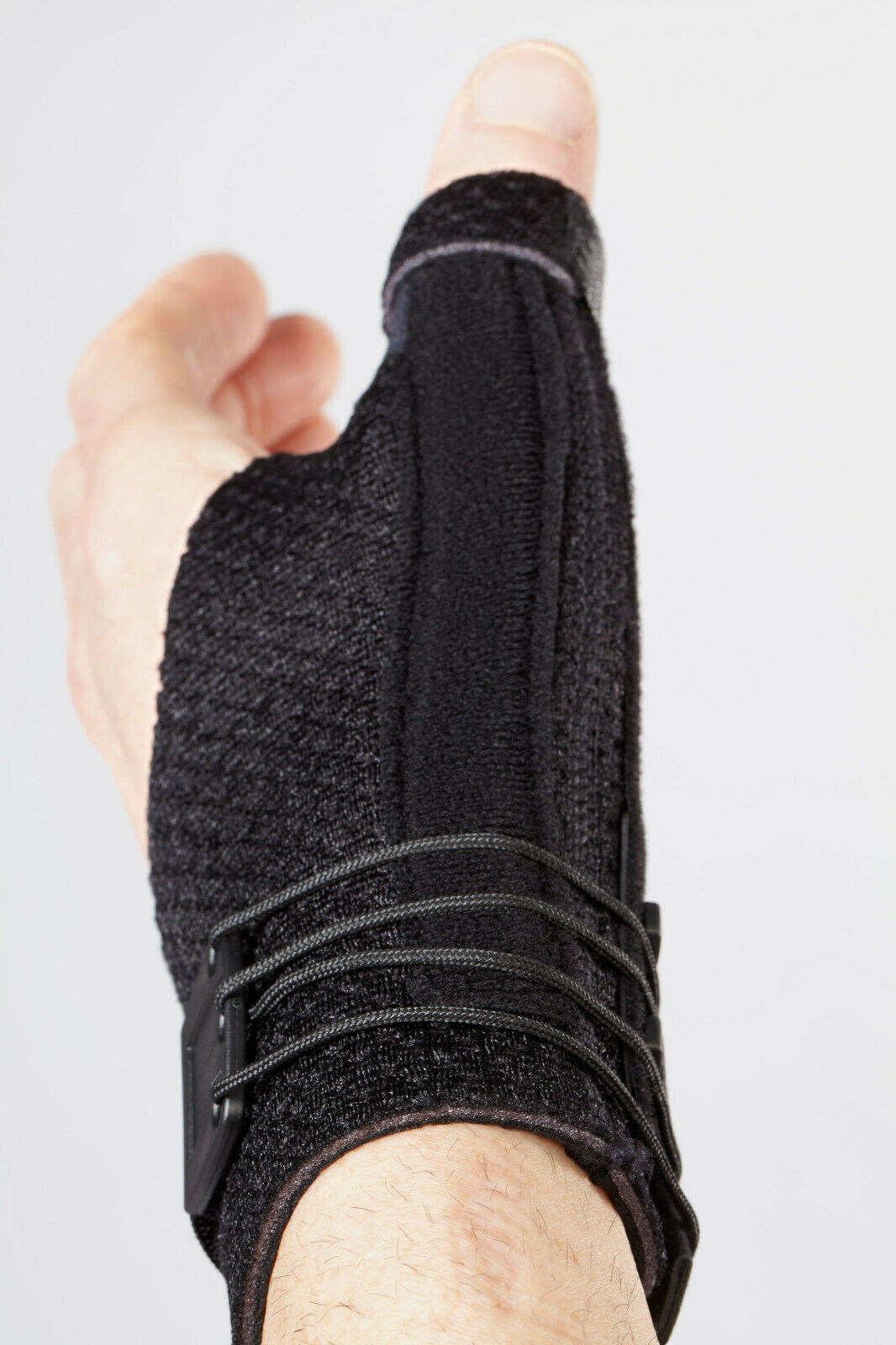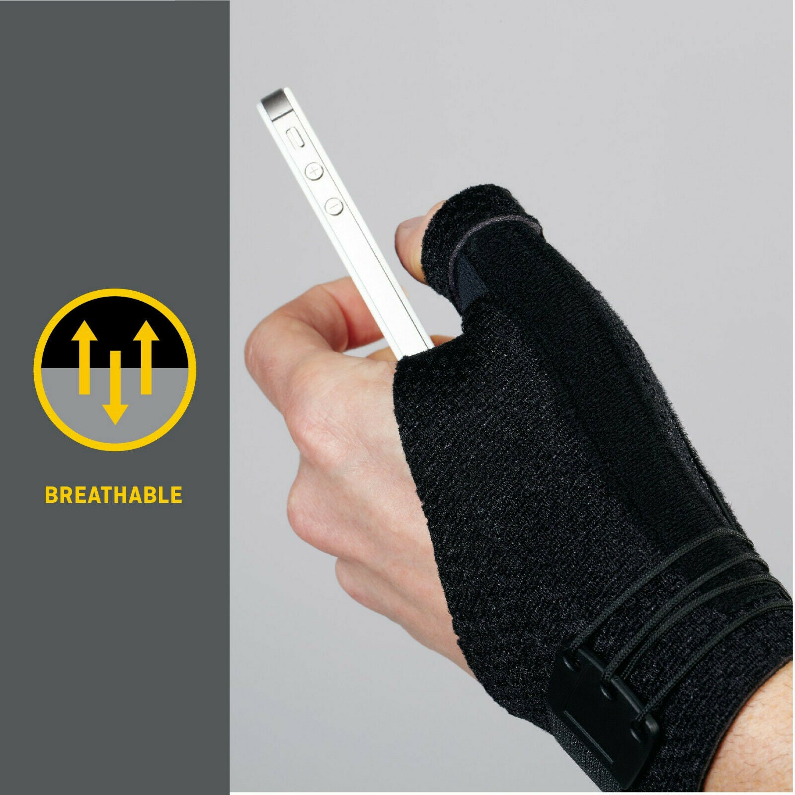 - Wrap and secure thumb strap around thumb for better fit, or along base of thumb for added stability.
