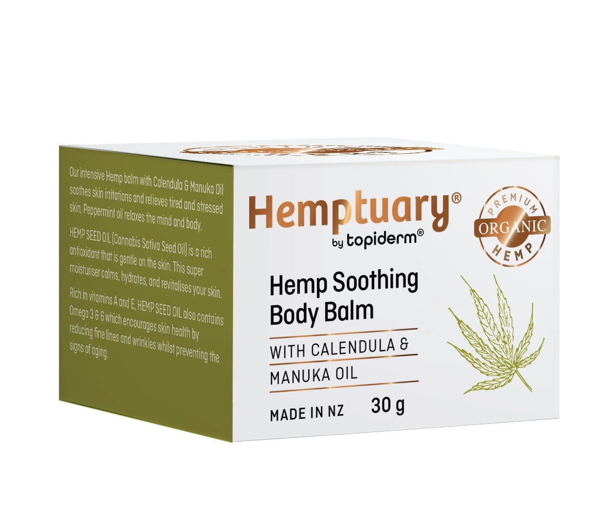 Hemptuary Hemp Soothing Body Balm with Calendula and Manuka Oil soothes skin irritations and relieves tired and stressed skin, while Peppermint Oil relaxes the mind and body. Hemp seed oil (cannabis sativa seed oil) is a rich antioxidant that is gentle on the skin, and this super moisturiser calms, hydrates and revitalises your skin.