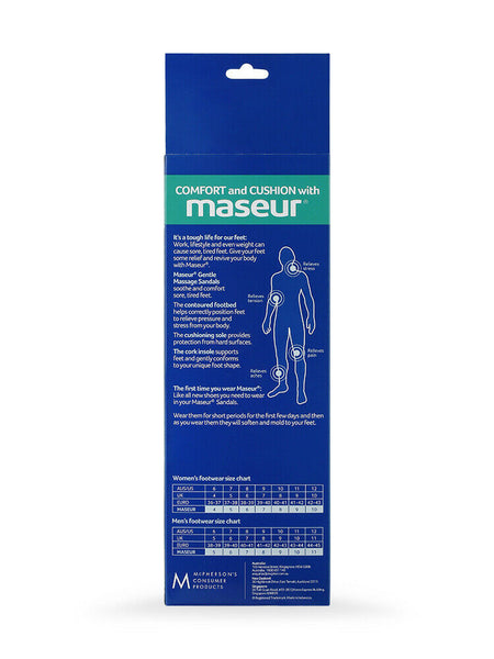 Maseur® helps promote healthy posture, balance and alignment. The unique contoured footbed provides support for arches, heels and toes and helps correctly position feet to relieve pressure on the knees, hips and backs. Features: