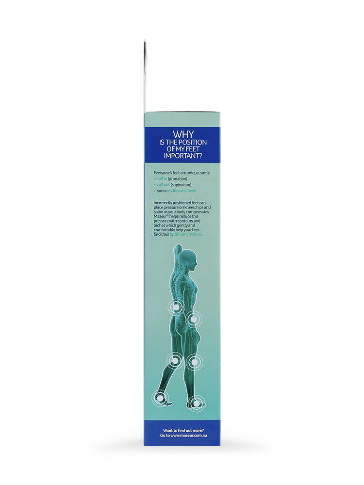 Maseur® helps promote healthy posture, balance and alignment. The unique contoured footbed provides support for arches, heels and toes and helps correctly position feet to relieve pressure on the knees, hips and backs. Features: