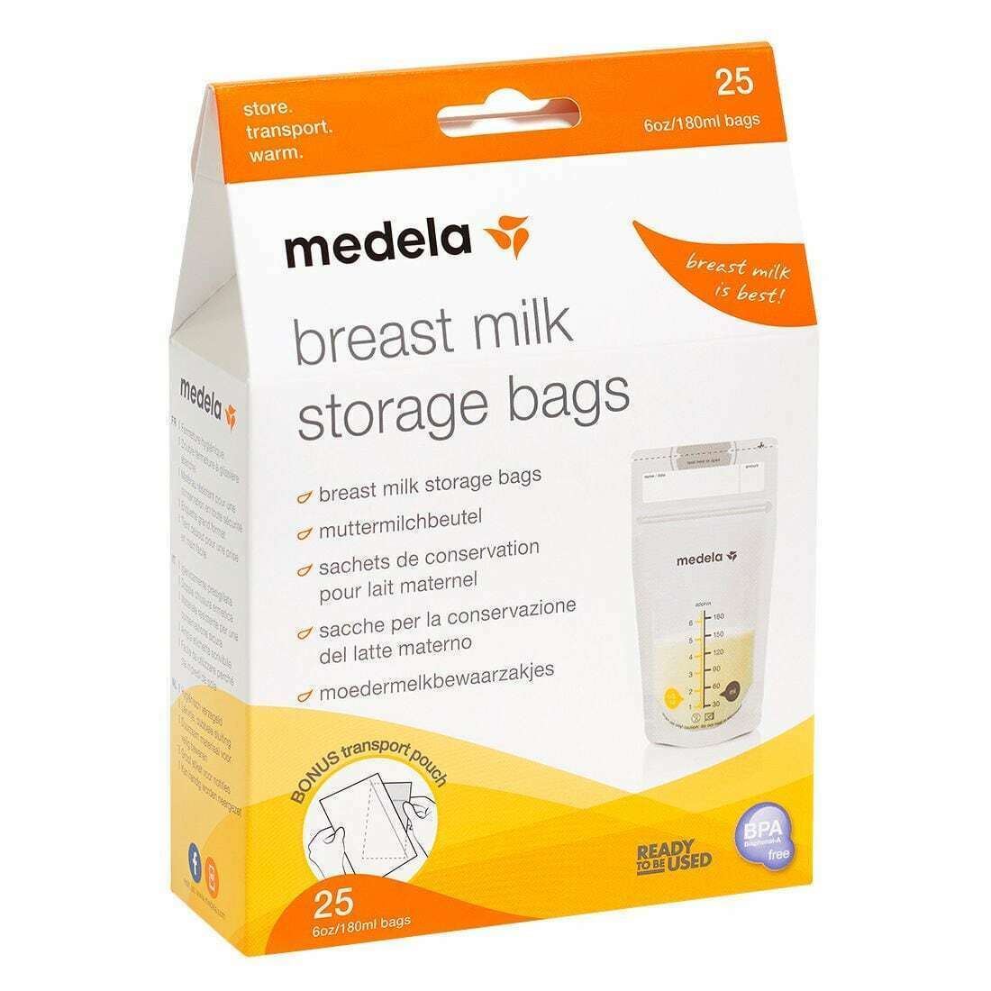Medela 180ml Breast Milk Storage Bags + Transport Pouch - 25 Pack