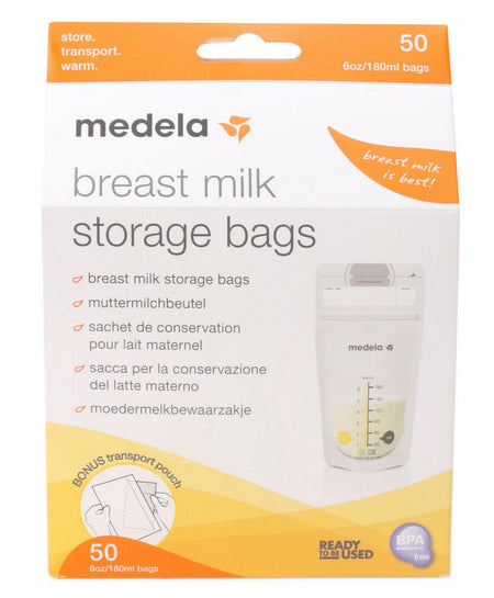 Medela 180ml Breast Milk Storage Bags Double Zip - 50 Pack