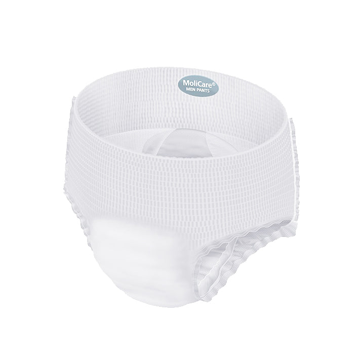 MoliCare Premium Men Pants 7 Drops Medium look and feel like regular underwear and are ideal for light to moderate levels of bladder weakness. Providing extra protection in the front where men need it most. The pants also have a 3-layer absorbent core that pulls fluid away from the surface, so the skin stays dry, healthy and free from odours. MoliCare Premium Men Pants have unique curly fibre technology that helps to maintain the skin’s natural pH level and is important in reducing infection and skin irritation caused by incontinence.