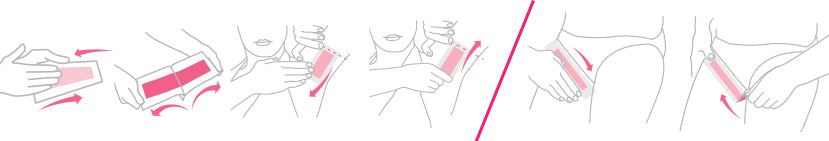 - Using the palm of your hands or fingertips, apply strip with firm pressure and firmly smooth over 3-4 times in direction of hair growth.