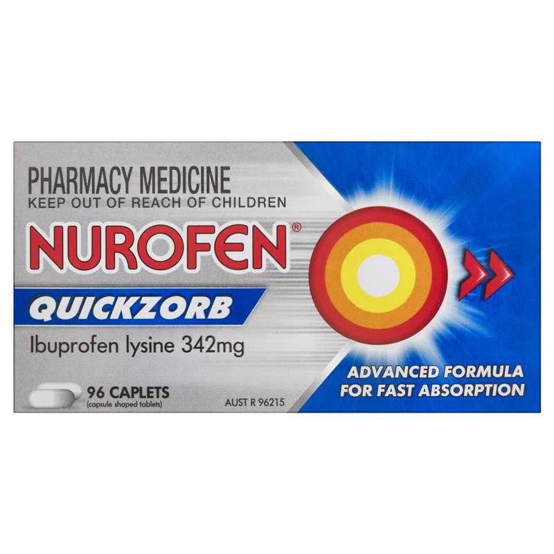 Nurofen Ibuprofen Quickzorb Fast Pain Relief 342mg 96 Caplets