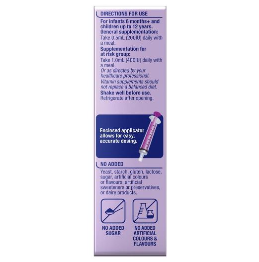 - General supplementation: Take 0.5ml (200IU) daily with a meal