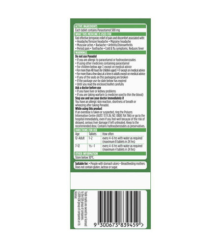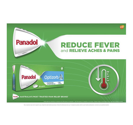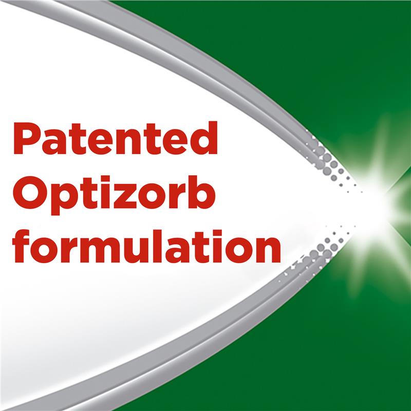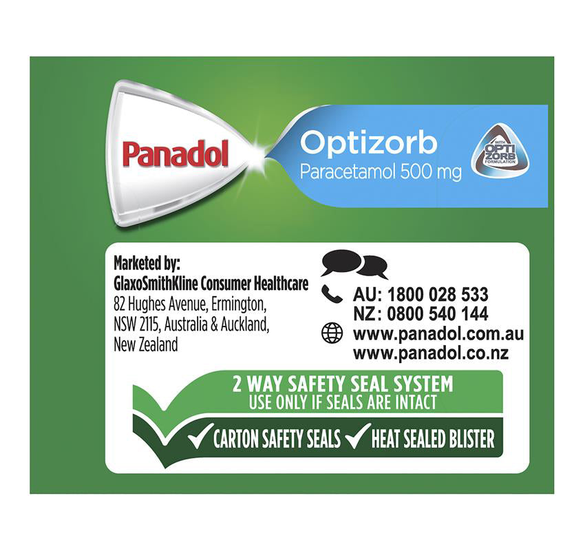 The Optizorb Formulation contains a patented delivery system which allows it to deliver paracetamol more efficiently by breaking down faster than regular Panadol tablets.