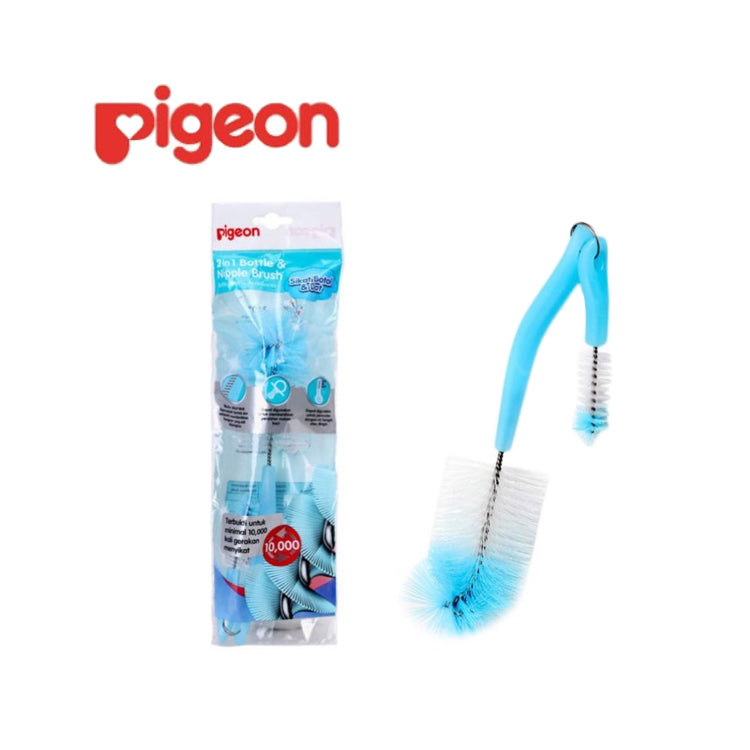 Pigeon Bottle & Teat Brush safe and durable in a 3-in-1 pack that comes with a silicone bottle brush, a sponge brush, and a nipple brush to thoroughly clean your baby's feeding bottles and nipples. It is a practical pack that can be used on any of your Pigeon feeding bottles and nipples.