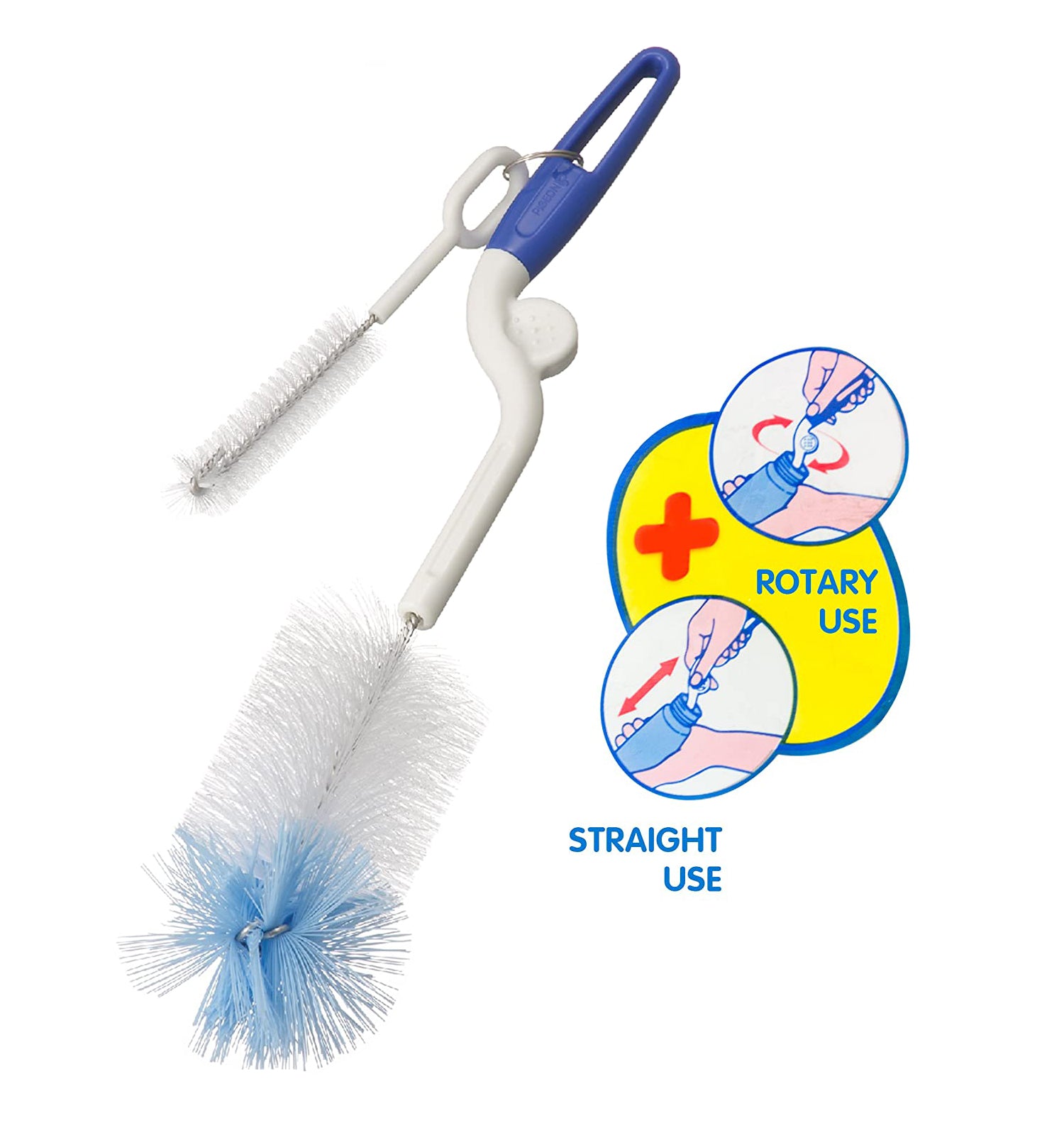 The special plastic coating on handle prevents damage to the mouth of bottle. The high-density tip of Nylon Brush removes even stubborn dirt in bottle. The flexible, folded Sponge of Sponge Brush allows you to remove stubborn dirt and the shape lets you wash thoroughly even at the hard-to-reach places in bottle.