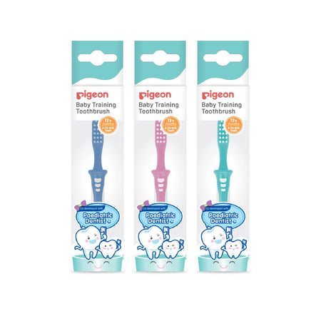 Pigeon Training Toothbrush Step 1 2 3 is a uniquely designed three step toothbrush system that caters to each stage of your baby's oral development. A value pack with three toothbrushes in the one set.