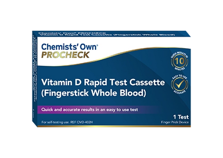 The Chemists’ Own PROCHECK Vitamin D Rapid Test is a quick, accurate and easy to use test to screen and monitor your Vitamin D levels at home.