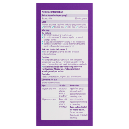 Rhinocort Hayfever Aqueous Nasal Spray 120 Doses 32mcg Relief Prevention NEW