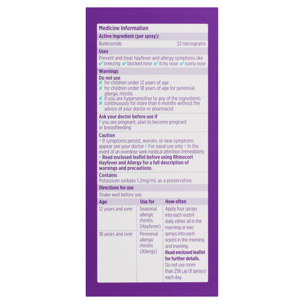 Read leaflet enclosed before using Rhinocort.
