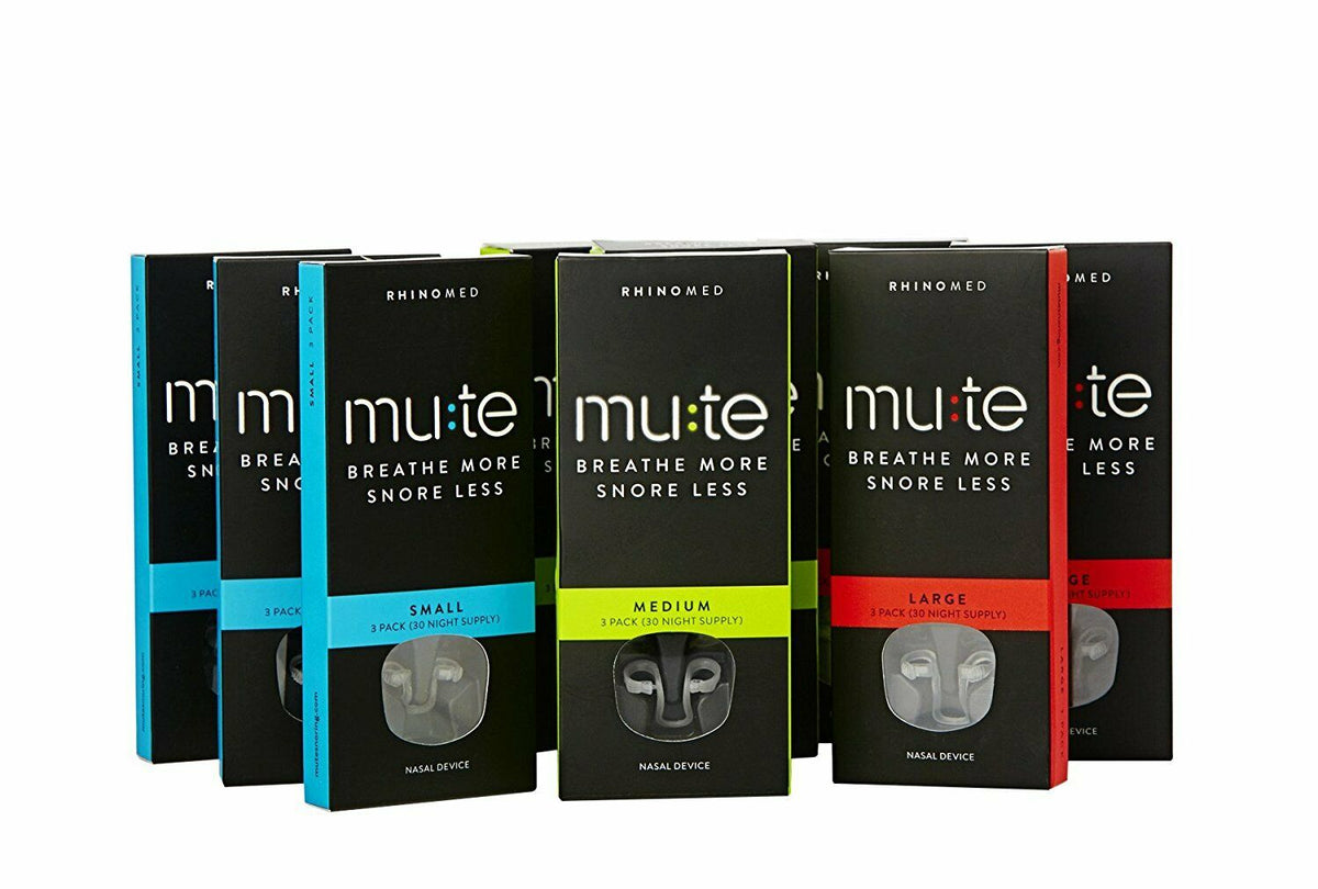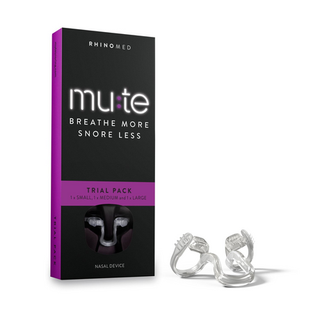 Mute is a new technology developed by a team of specialists to alleviate the severity and incidence of snoring and improve your quality of sleep. Mute fits snugly into your nose while gently and comfortably dilating your nostrils as you sleep to help stop snoring. Made from ultra-soft medical grade polymers, Mute increases the volume of air travelling through the nose during sleep, encouraging nasal breathing and may alleviate congestion – factors critical to help stop snoring and a better quality of sleep. The mute started pack comes with a smallem edium & large size for you to find your perfect fit.