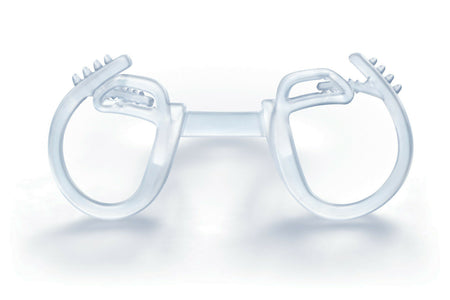Wash your hands, hold the device by the bridge with the curved arms facing towards you and the ribbed paddles facing up and away from you. Bring the device up to your nose and place the curved arms in first to make contact with the inside floor of your nose. Gently guide the device backwards into your nose to a point that it is comfortable. You may need to adjust your nostrils over and around the ridged paddles to ensure it’s fully inserted. To ensure that the curved arms are resting in the correct position on the floor of the nose, the bridge should span across the top of your nostrils. If not, push the bridge of the device upwards to the tip of your nose.