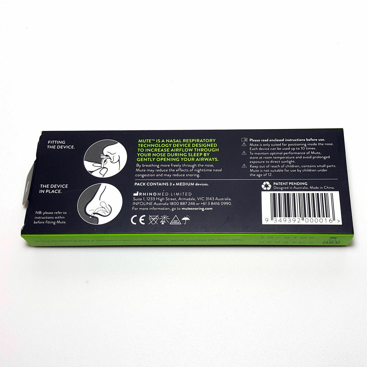 - Increases Air Flow - Mute has been anatomically designed to improve sleep quality by increasing air flow during sleep (on average 38% in clinical trial at Royal Victorian Eye & Ear Hospital).