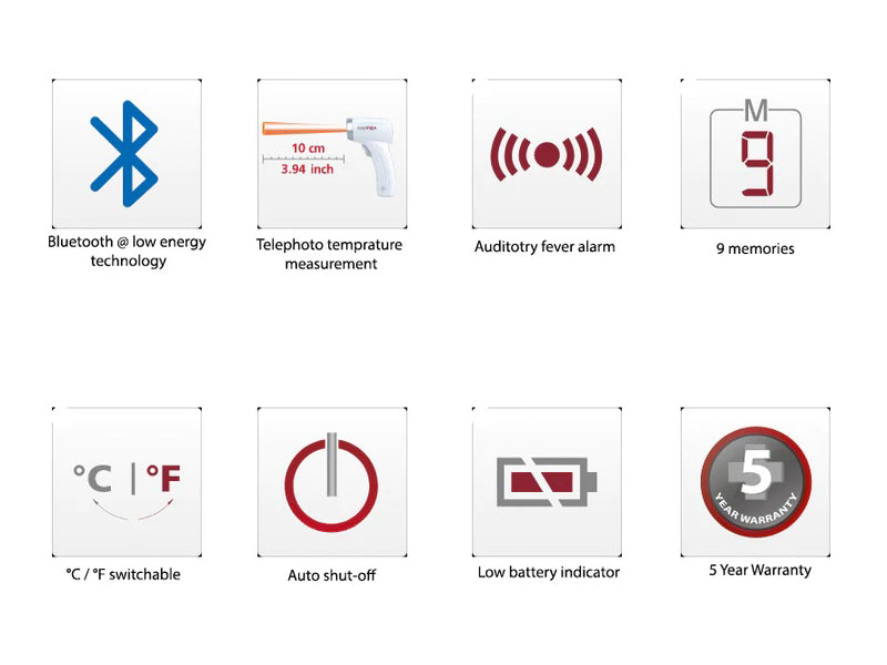 Rossmax new Telephoto thermometer provides a consistent and larger distance (within 10 cm/3.94 inch) temperature measurement without skin contact.