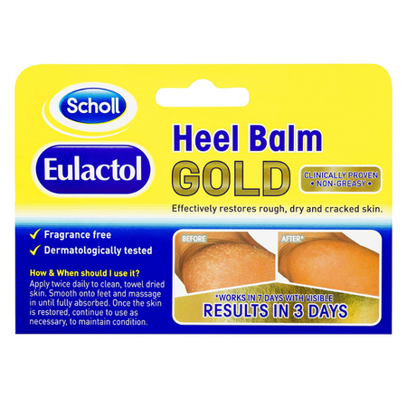 Scholl Eulactol Cracked Heel Balm Gold, Cracked heels occur when the thick skin on the sole of the foot becomes dry and is more prone to cracking.