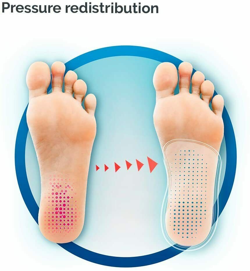 - Works in three ways: Shock absorption, Pressure redistribution and stabilisation