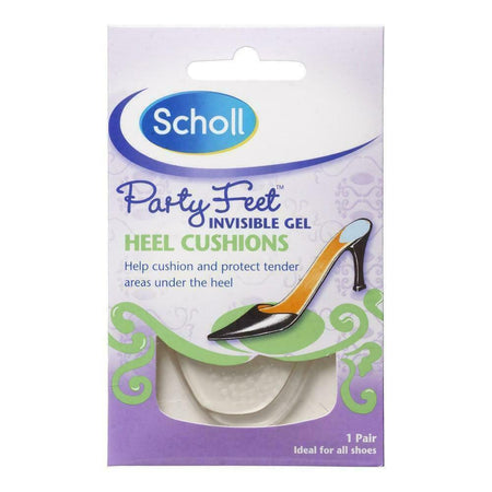 Scholl Party Feet Gel Heel Cushions provide invisible gel cushioning relief for under your heels. Clear gel, ultra slim and discreet with a non-slip technology to stay firmly in place. These Ultra slim gel cushions are also washable and reusable this great technology re-develops the sticky adhesive after washing.