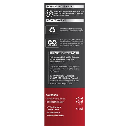 The high-performance hair colour formula provides you with perfect grey coverage and irressistible colour intensity for up to 10 weeks. The Diamond Gloss Sealer post-colour treatment contains Keratin and Apricot Kernel Oil for healthy-looking, stronger hair. it locks in the colour the colour pigments and helps your colour stay more vibrant for longer. Now in a tube for easy application and multiple uses.