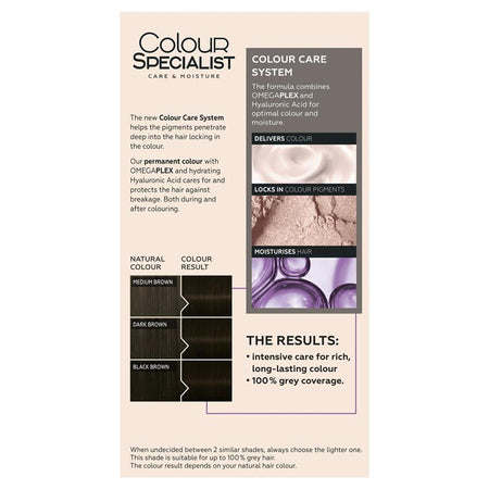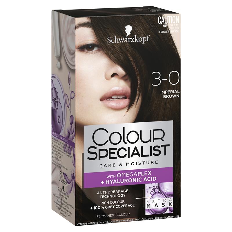 Schwarzkopf Colour Specialist 3.0 Imperial Brown has Omegaplex professional anti-breakage technology that protects & reinforces against damage, strengthens micro-bonds inside hair fibre and offers extra long lasting colour - 100% grey coverage.