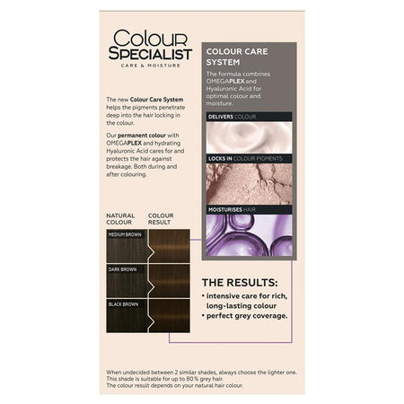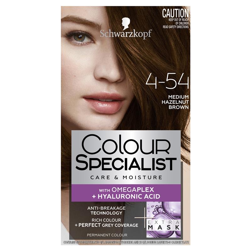 Schwarzkopf Colour Specialist 4.54 Medium Hazelnut Brown contains Omegaplex which protects & reinforces against damage, strengthens micro-bonds inside hair fibre and offers extra long-lasting colour - the perfect grey coverage.