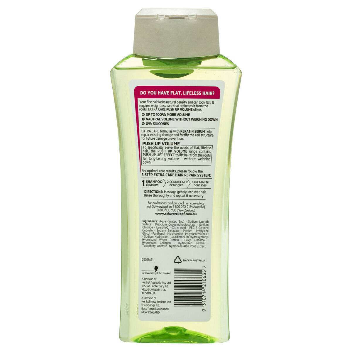 Schwarzkopf Extra Care Push Up Volume Shampoo provides 100% volume without weighing down for flat and lifeless hair.