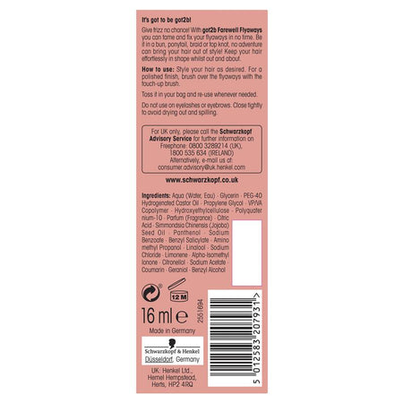 Schwarzkopf got2b Farewell Flyaways Touch-Up Brush - It's got to be got2b! Give frizz no chance! With got2b Farewell Flyaways you can tame and fix your flyaways in no time. Be it in a bun, ponytail, braid or top knot, no adventure can bring your hair out of style! Keep your hair effortlessly in shape whilst out and about.